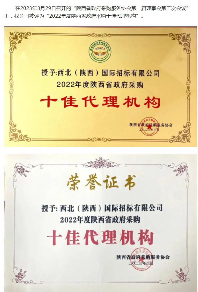 熱烈祝賀我公司被評為“2022年度陜西省政府采購十佳代理機(jī)構(gòu)”