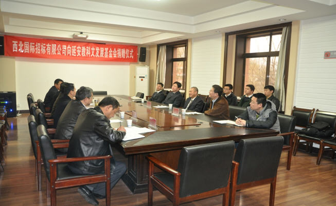 張金鎖校長介紹了延安大學(xué)相關(guān)歷史及現(xiàn)狀,并對西北國際招標(biāo)公司對延安科教文發(fā)展給予的支持表示衷心的感謝。戈總表示,為促進(jìn)延安教科文發(fā)展基金會各項(xiàng)事業(yè)的順利實(shí)施,以及從戰(zhàn)略高度和長遠(yuǎn)發(fā)展需要出發(fā),我們希望通過這次合作建立多層次、高水平的校企合作關(guān)系,達(dá)到優(yōu)勢互補(bǔ)、共同發(fā)展的目的!