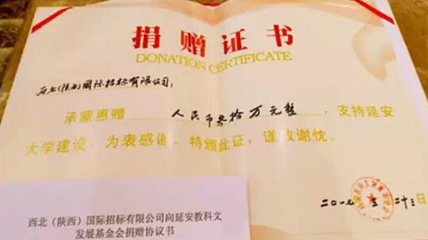 同時(shí),我們牢記企業(yè)的社會責(zé)任,積極支持革命圣地的教育與科技發(fā)展,公司決定向延安教科文發(fā)展基金會捐款30萬元。