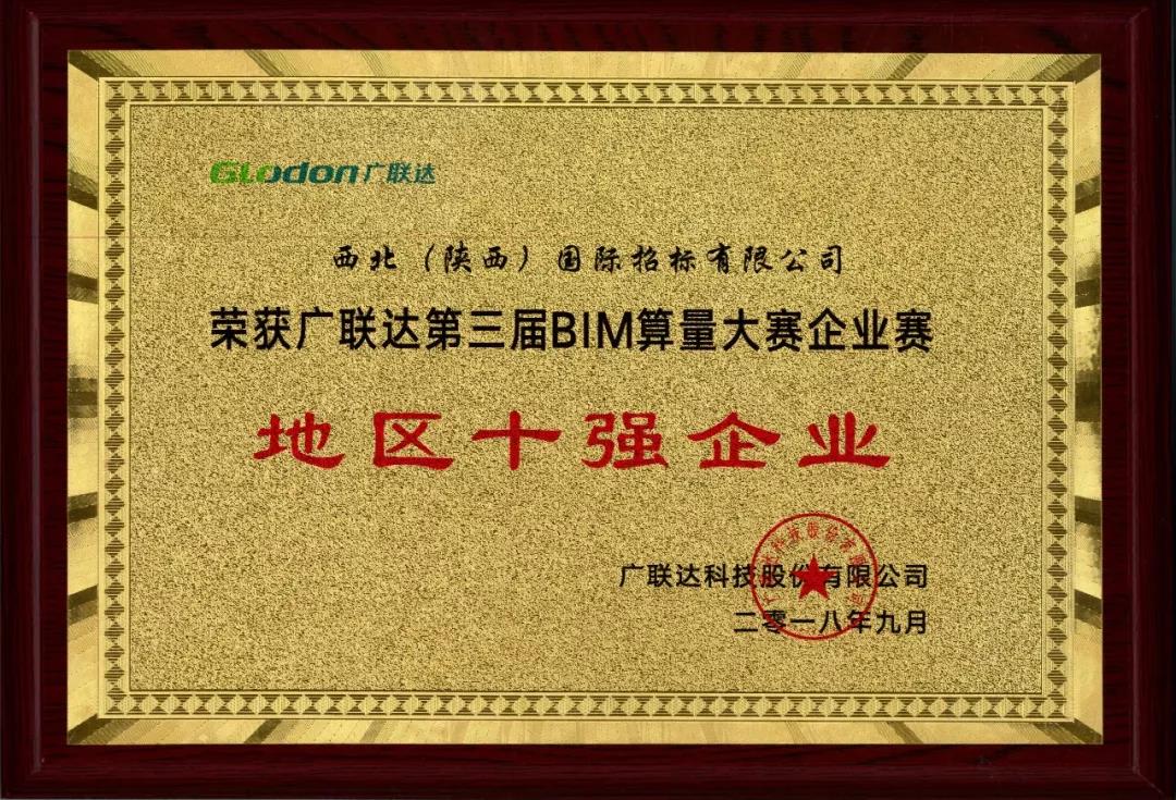 我公司榮獲“廣聯(lián)達(dá)第三屆BIM算量大賽陜西地區(qū)十強(qiáng)企業(yè)”。