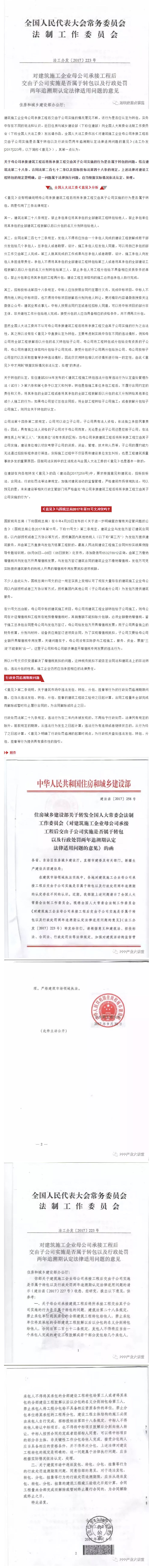 全國人大法工委復(fù)函住建部!母公司中標(biāo)子公司施工屬于轉(zhuǎn)包?