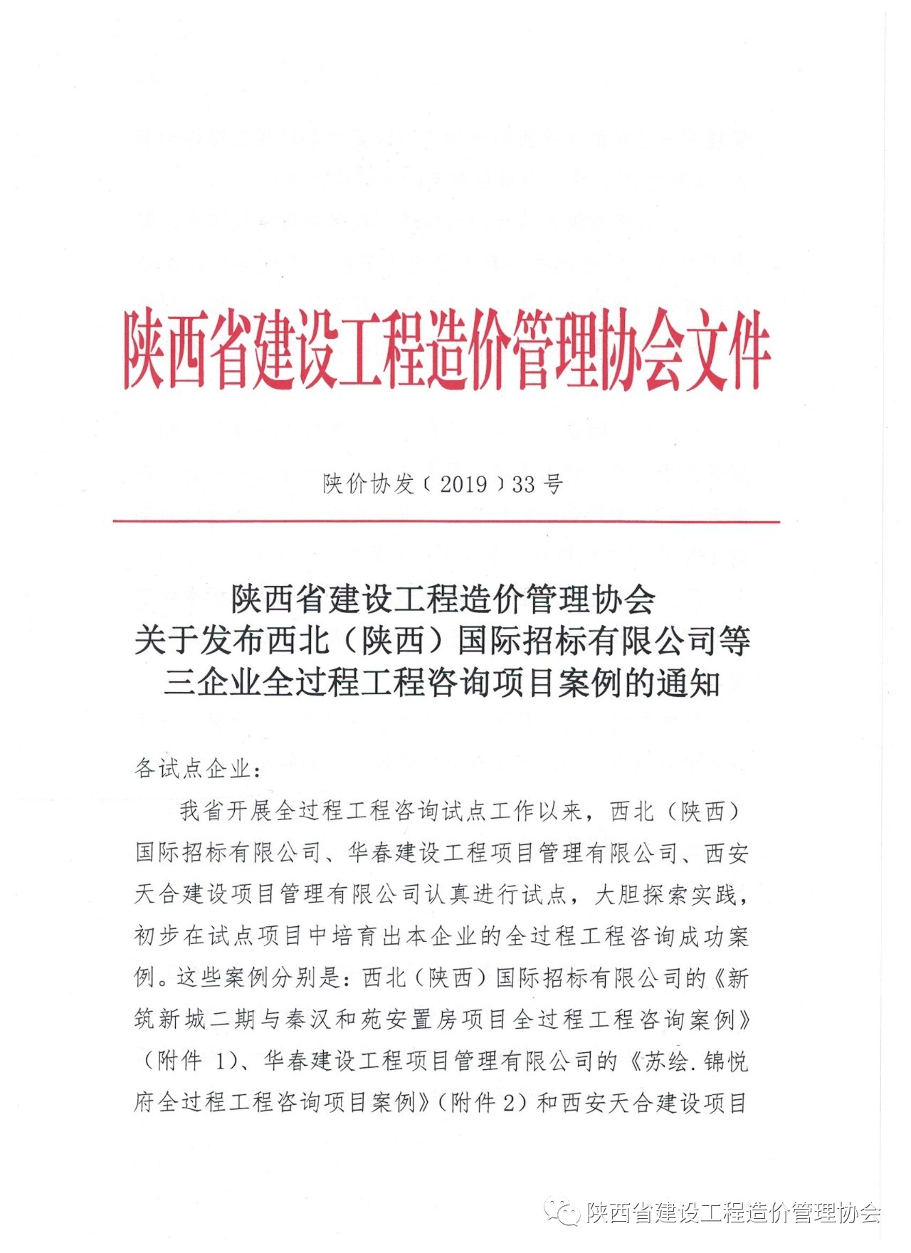 陜價(jià)協(xié)關(guān)于發(fā)布西北(陜西)國際招標(biāo)有限公司等三企業(yè)全過程工程咨詢項(xiàng)目案例的通知