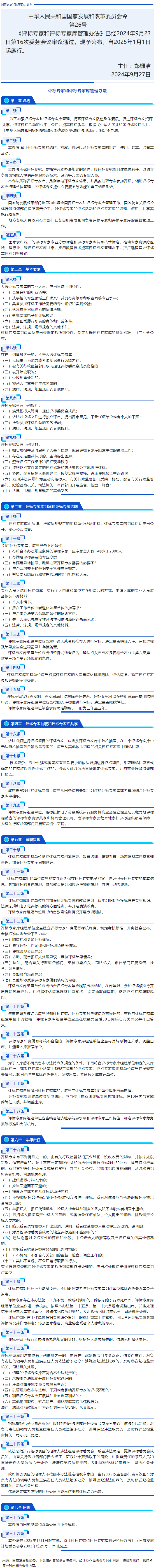 國(guó)家發(fā)改委發(fā)布《評(píng)標(biāo)專(zhuān)家和評(píng)標(biāo)專(zhuān)家?guī)旃芾磙k法》2024年第26號(hào)令