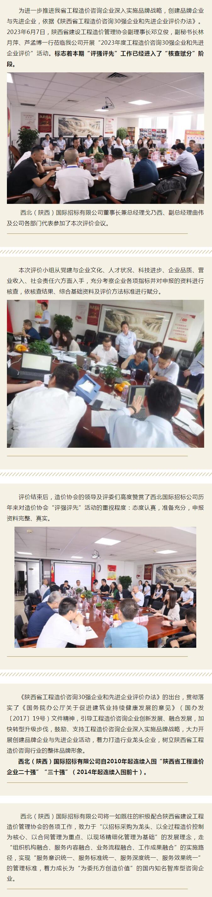 陜西省建設(shè)工程造價管理協(xié)會蒞臨我公司開展“2023年度工程造價咨詢30強(qiáng)企業(yè)和先進(jìn)企業(yè)評價”活動