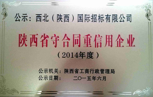 祝賀我公司榮獲2014年度陜西省“守合同重信用”企業(yè)。根據(jù)國家工商總局和陜西省工商行政管理局通知文件要求,公司申報并通過審核,現(xiàn)已在陜西日報和陜西省工商行政管理局網(wǎng)站向社會公示。