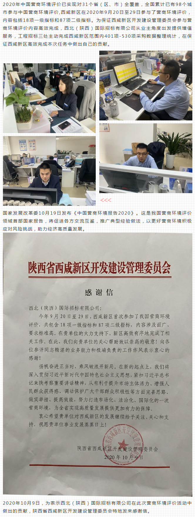 陜西省西咸新區(qū)開發(fā)建設(shè)管理委員會向我公司發(fā)來感謝信