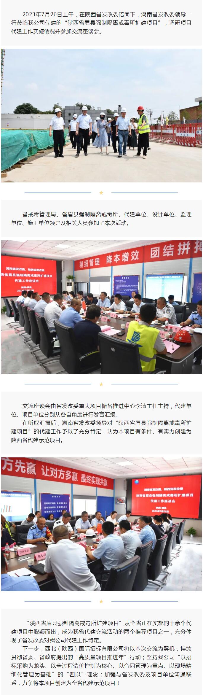 湘、陜兩省發(fā)改委領(lǐng)導(dǎo)蒞臨我公司代建“陜西省眉縣強制隔離戒毒所擴建項目”調(diào)研并交流座談