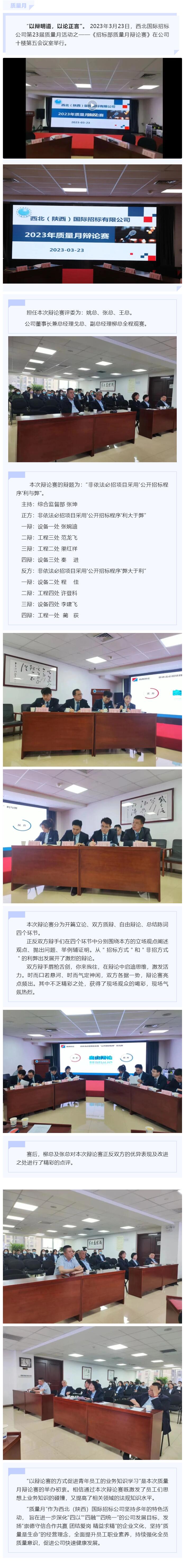 “以辯明道,以論正言” ——西北國(guó)際招標(biāo)公司第23屆質(zhì)量月活動(dòng)之《招標(biāo)部質(zhì)量月辯論賽》