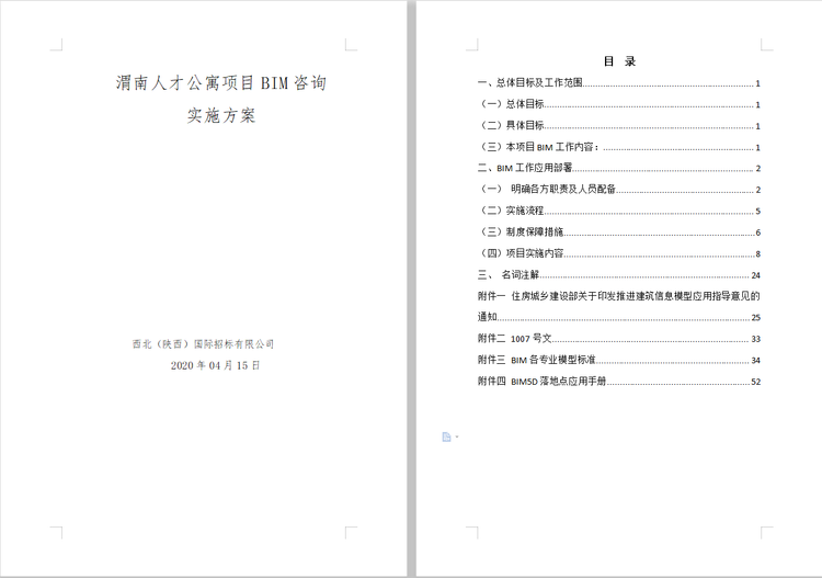 我公司于2020年4月成功中標(biāo)渭南高新區(qū)東區(qū)人才公寓項(xiàng)目全過程工程咨詢,是我公司首例包含BIM技術(shù)應(yīng)用的全過程工程咨詢項(xiàng)目。BIM中心對成立以來的首個項(xiàng)目格外重視,在項(xiàng)目前期充分準(zhǔn)備,工作有序開展。在鞏總、王東總的指導(dǎo)下,完成了部分階段性工作。疫情期間,BIM中心成員多方搜集資料,深入學(xué)習(xí),不斷調(diào)整思路,多次在綜合管理部內(nèi)部、渭南項(xiàng)目部通過視頻會議的形式,修改討論,完成了實(shí)施方案從0到1的編制工作,明確了本項(xiàng)目的總體目標(biāo)與工作范圍,對BIM應(yīng)用做出了準(zhǔn)確的規(guī)劃與部署。