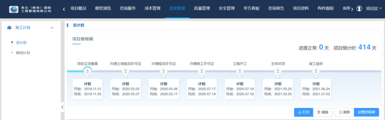 目前BIM中心已安排有序駐場。駐場后初步搭建了5D平臺,創(chuàng)建網(wǎng)頁端、項(xiàng)目云空間。目前已經(jīng)將網(wǎng)頁端權(quán)限開放至相關(guān)領(lǐng)導(dǎo)及部分業(yè)主代表,項(xiàng)目初期充分吸收各方意見,嘗試探索工作的深度廣度。通過和廣聯(lián)達(dá)公司深入溝通,成功在網(wǎng)頁端添加施工總計(jì)劃、設(shè)置項(xiàng)目里程碑,使得項(xiàng)目計(jì)劃與重要時(shí)間節(jié)點(diǎn)一目了然。