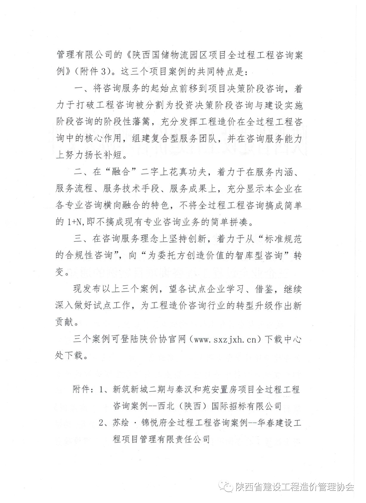 陜價(jià)協(xié)關(guān)于發(fā)布西北(陜西)國際招標(biāo)有限公司等三企業(yè)全過程工程咨詢項(xiàng)目案例的通知