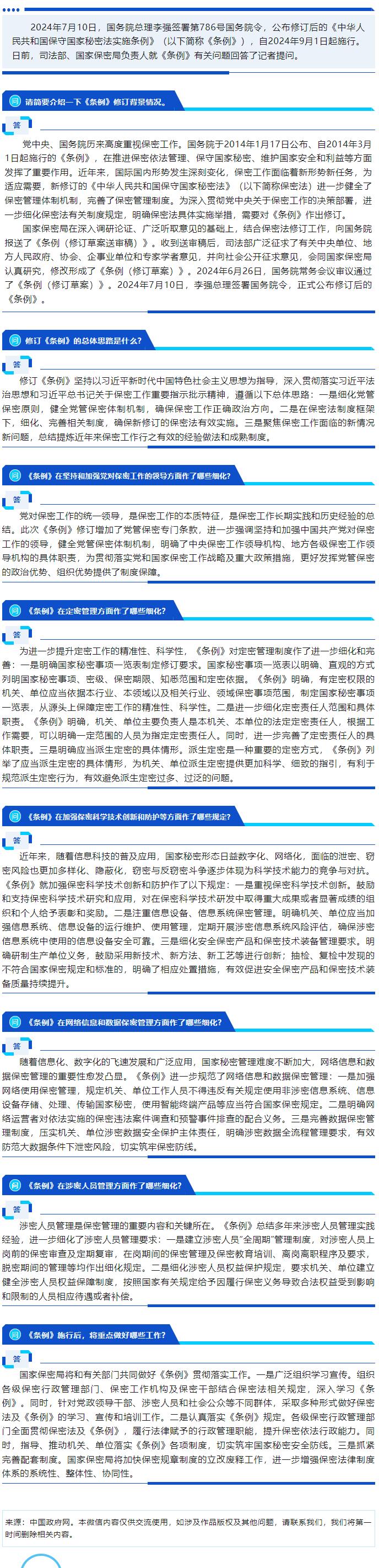 司法部、國家保密局負(fù)責(zé)人就《中華人民共和國保守國家秘密法實(shí)施條例》修訂答記者問