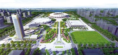 五月的西安港,天朗氣清。主體育場(chǎng)橡膠跑道加緊鋪設(shè),游泳跳水館的菱形柱吊裝正緊鑼密鼓進(jìn)行,體育館正進(jìn)行裝修收尾,奧體中心中央廣場(chǎng)石材已鋪裝完成。